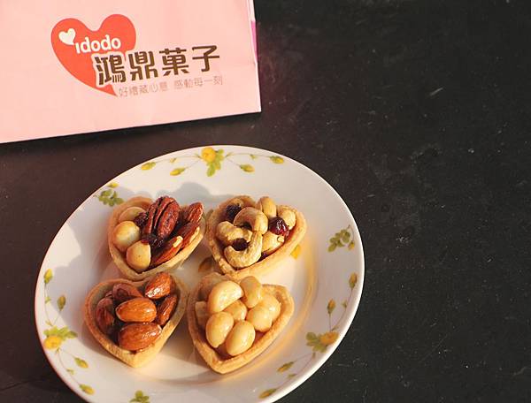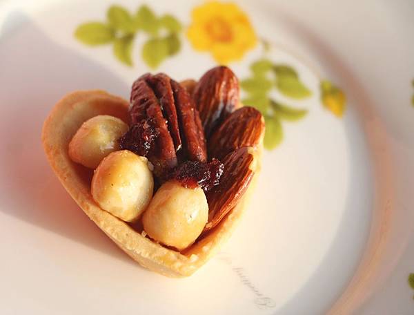 愛心造型堅果塔,甜滋滋的,非常喜氣的傳遞滿滿幸福感。