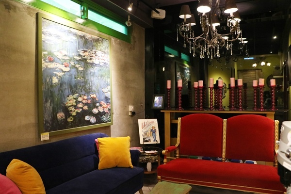 進來大廳裡面更美了,1967是以歐洲精品旅館為發想,裡面大都陳列老闆收藏的藝術品,有名家畫作復刻、祖母的綠色古董沙發、武士盾牌與寶劍、鹿角吊燈、華麗桌燈,每一個擺設與細節都精心設計,儼然就像一座小型博物館。