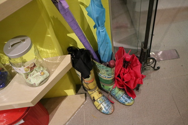 角落的彩繪雨鞋則是傘架,可愛又有創意唷!!