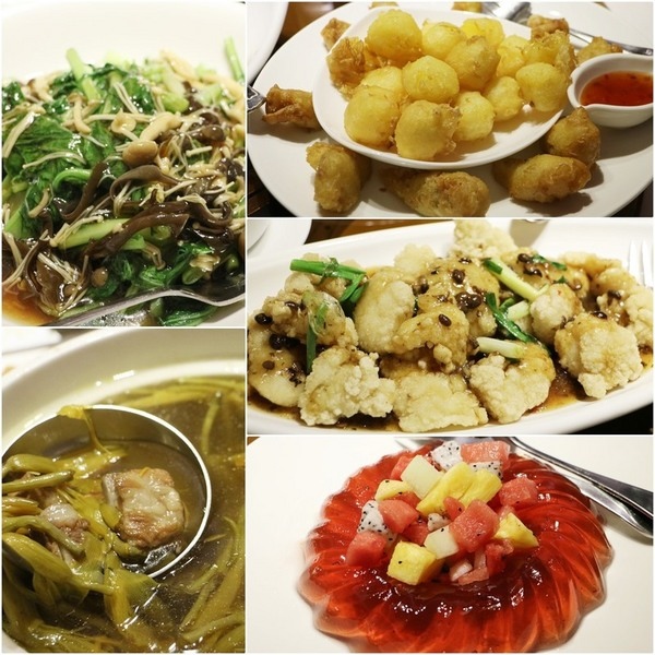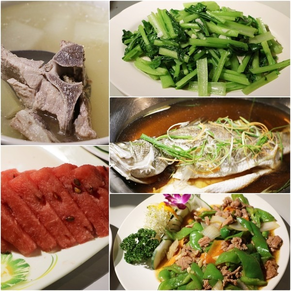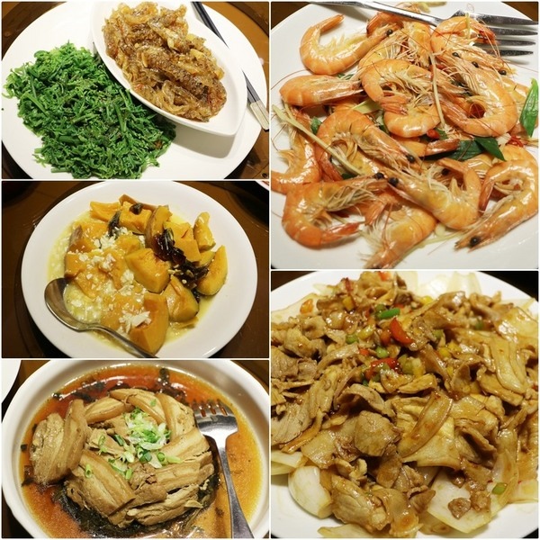 照片左起有峇里雙拼盤、百果戰鬥雞、薑汁焗白蝦、碧玉炒雙鮮、梅干燒扣肉、彩椒鴕鳥肉、季節鮮時蔬、清蒸海上鮮、花東水果盤、冬瓜排骨湯。以上共8菜、1湯、1水果共$2500。峇里商旅酒店所提供午餐非常豐盛又新鮮的,尤其是彩椒鴕鳥肉,本來想說運動量十足的駝鳥肉,肉質應該很硬,結果一入口非常鮮嫩又好咬的,大家一致推薦。
