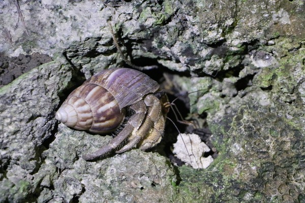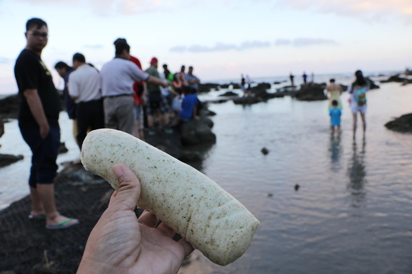 意外發現10隻腳的蝸牛??!!仔細一看...這是穿著鍋牛衣服的寄居蟹。寄居蟹是小野柳最具環境指標的生物,他喜歡覓食腐蝕食物,因此有他才有乾淨的海岸,在小野柳也比較聞不到一般港口魚兒們腥臭的味道。
